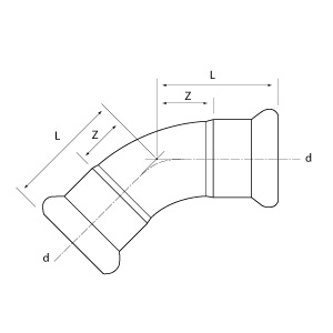 - Press-Fit 316L Stainless Steel 45° Elbow